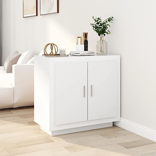 HaoChrymec Sideboard with 2 Storage Compartments, Engineered Wood Cabinet, Sideboards for Living Room, Kitchen Cabinets Organiser, White Finish, Freestanding Storage Unit, 80x40x75 cm