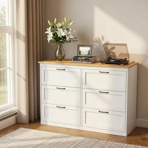 GRAVFORCE Bedroom Chest of Drawers White Storage Organiser Unit with 6 Drawers Modern Style Dressers for Living Room Bedroom