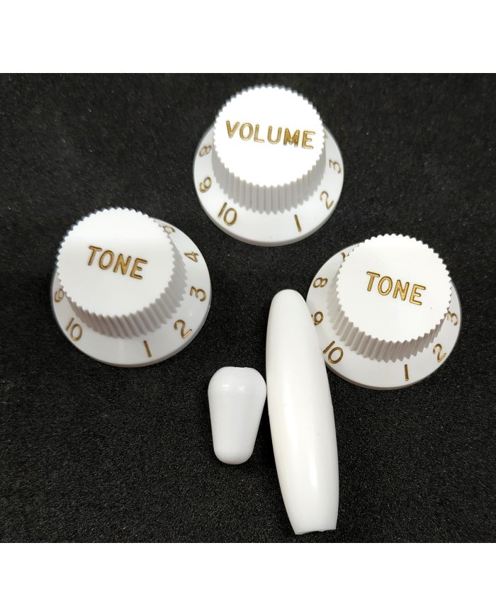 Stratocaster White set : 3 control UFO + Tremolo + Switch Metric size Knobs