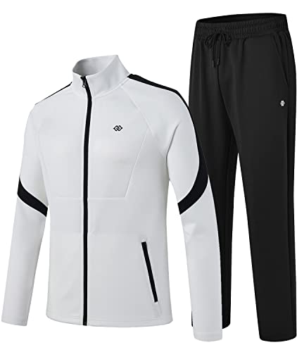 MoFiz Men's Tracksuits Set Long Sleeve Causal Full Zip Running Sports Sweatsuit For Men 2 Piece Outfits, Aa-white&black, Large