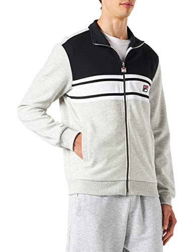 FILA Men's Boulogne Track Jacket Sweatsuit, Light Grey Melange-Black Beauty-Bright White, S