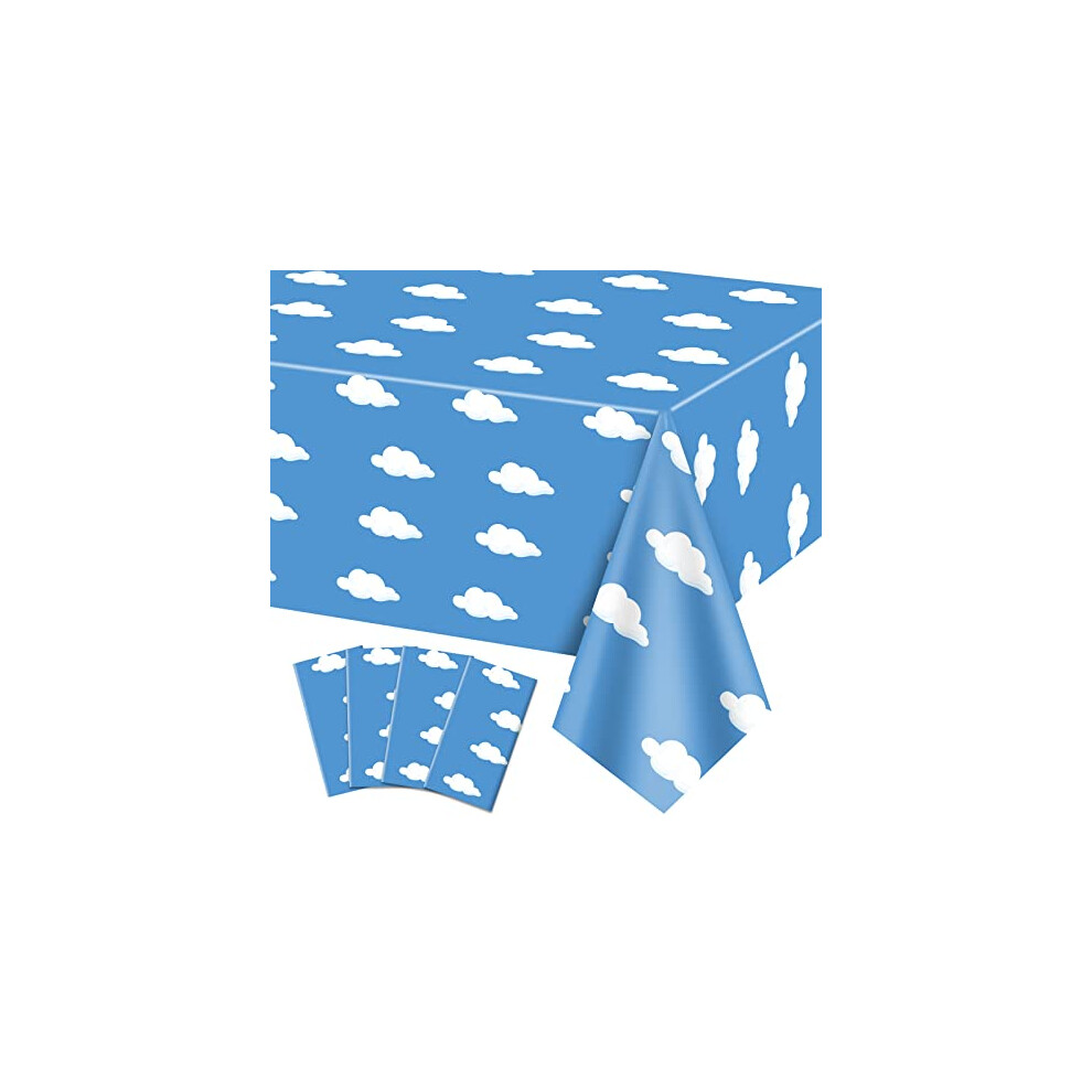 4 Pack Blue Sky White Clouds Tablecloths, 137 x 274cm Blue Sky Table Cover Story Decorations for Kids Birthday Party, Baby Shower Party