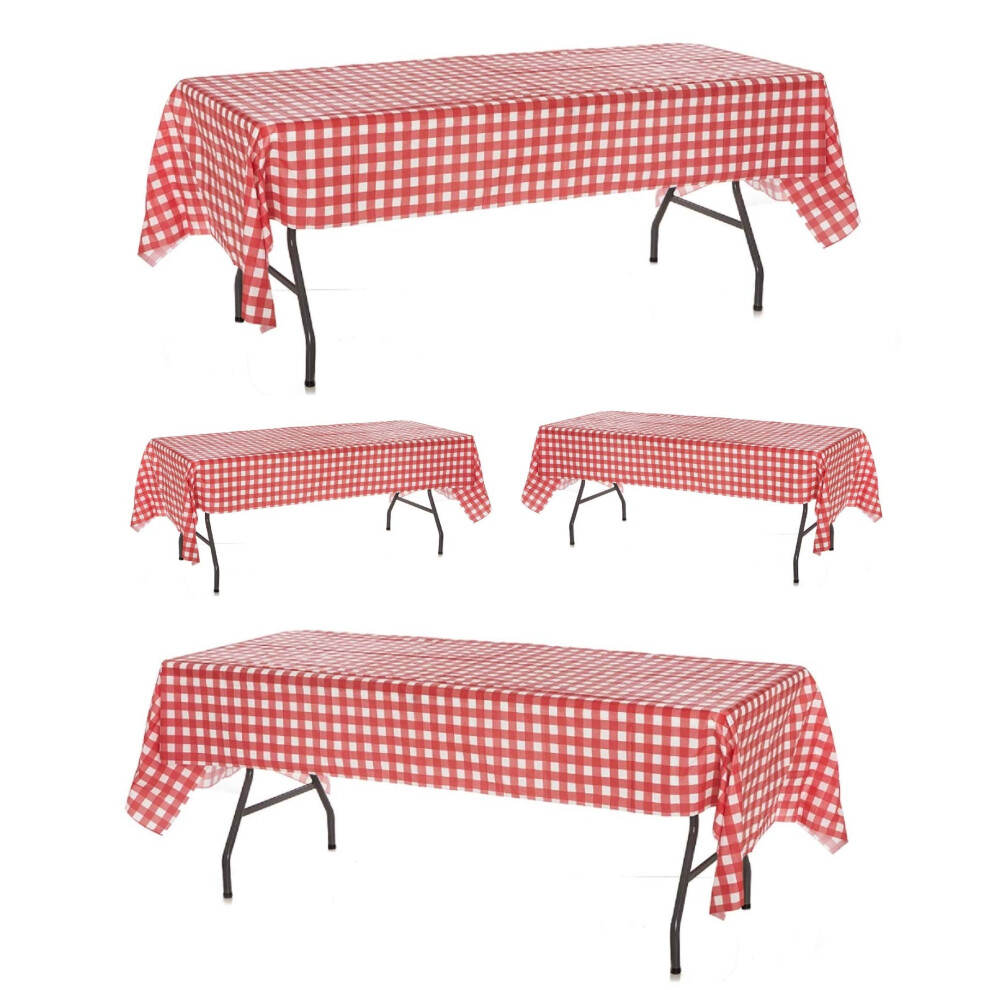 Oojami Pack of 4 Plastic Red and White checkered Tablecloths - 4 Pack - Picnic Table covers