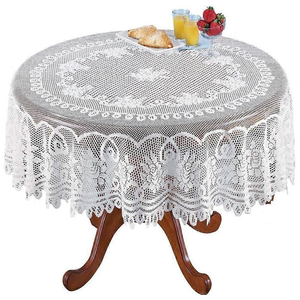 (As show, One size) White Lace Round Tablecloths Washable Jacquard 70 inch Tablecloth Dining Table Cover