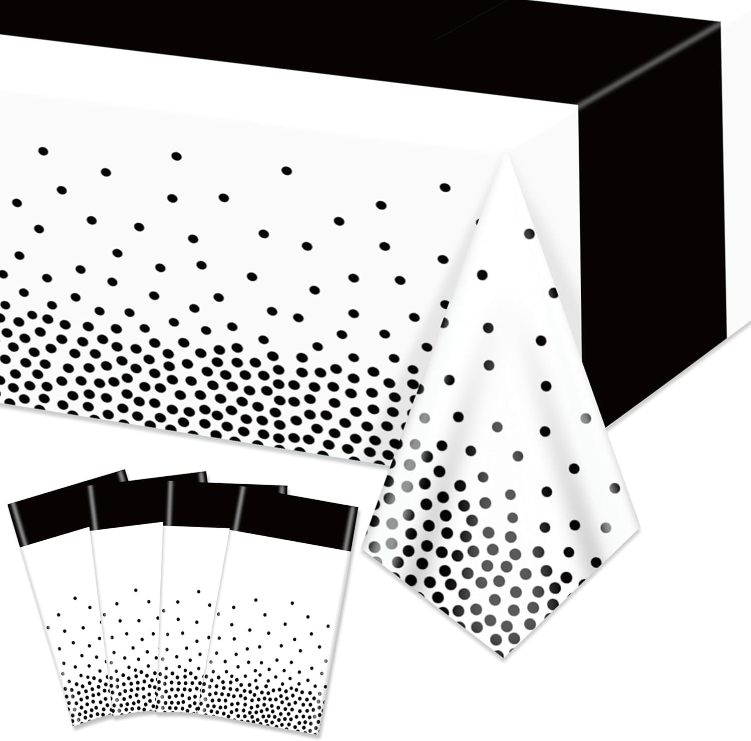 4 Pack White and Black Tablecloths - 86.6"x51.2" Rectangular Waterproof Black D