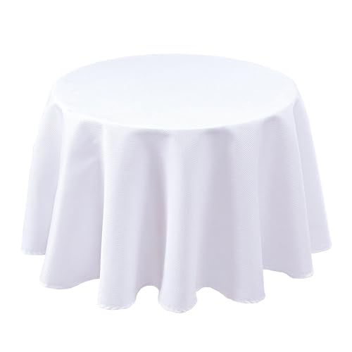 Biscaynebay Fabric Round Tablecloths 70 Inches in Diameter, White Water Resistant Tablecloths for Dining, Kitchen, Wedding and Parties etc. Machine Washable