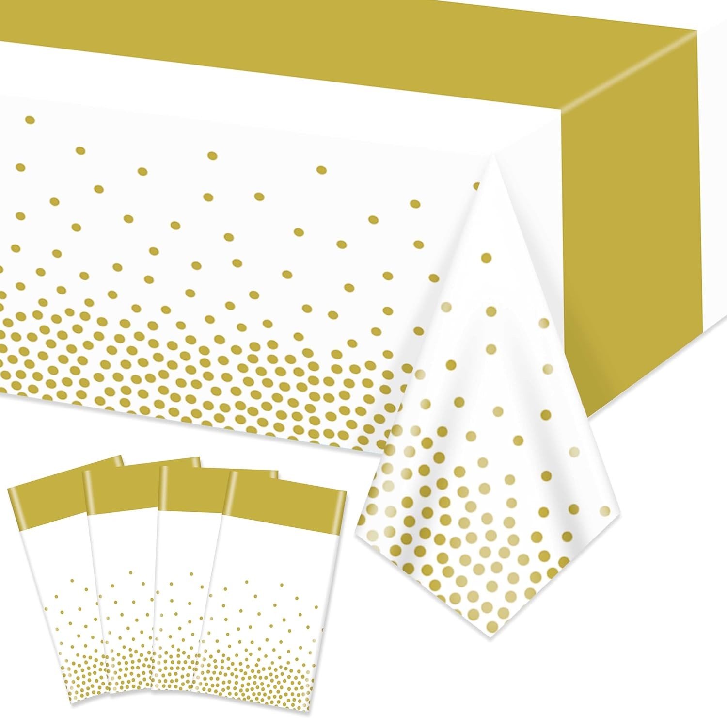White Disposable Tablecloths, Pack Of 10, 137 X 274 CM, Plastic, WaterRepellent, Gold Polka Dot Rectangular Tablecloths