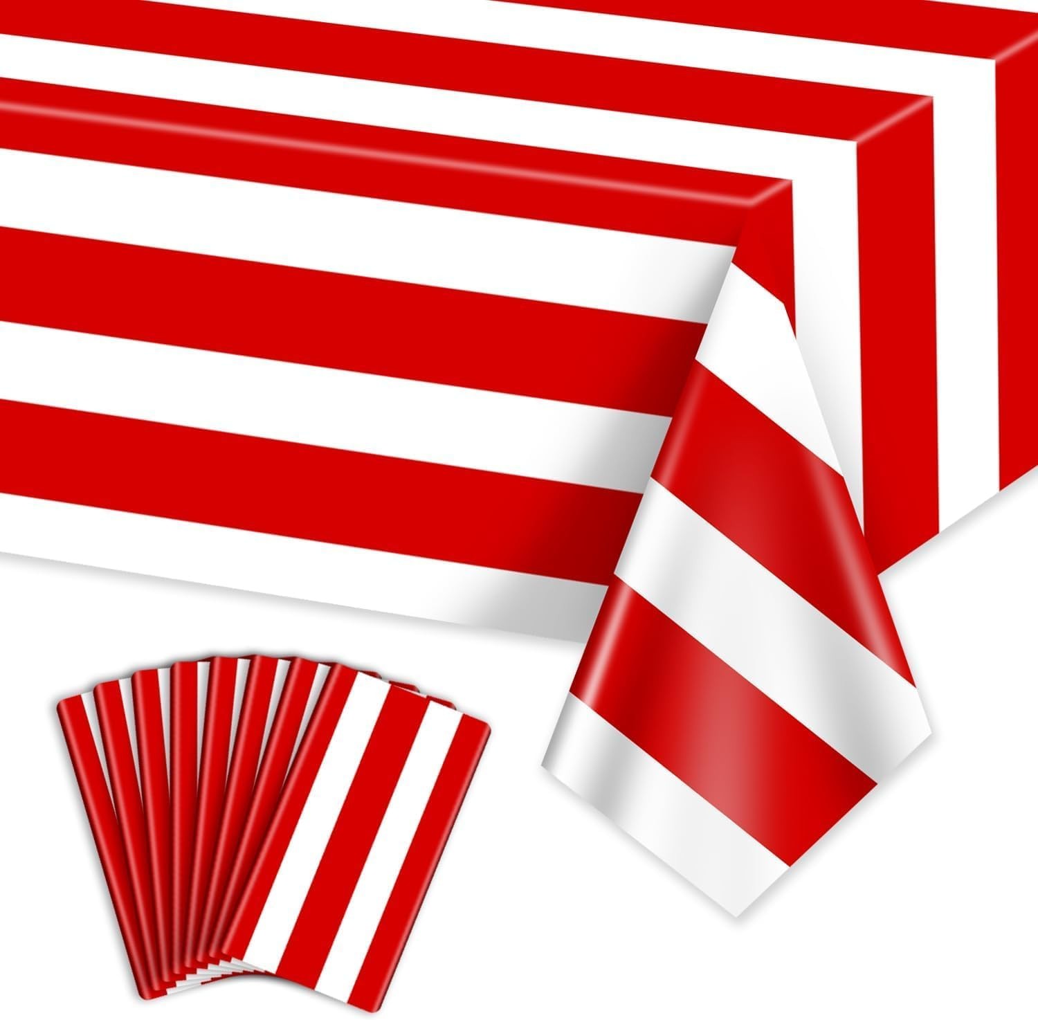 PIXHOTUL 8 Pcs Red and White Striped Vertical Tablecloths, Carnival Tablecover
