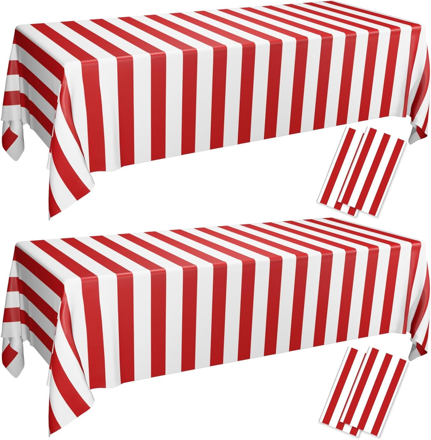 4 Pieces Carnival Table Cloths, Red and White Stripe Tablecloths, Red Plastic T