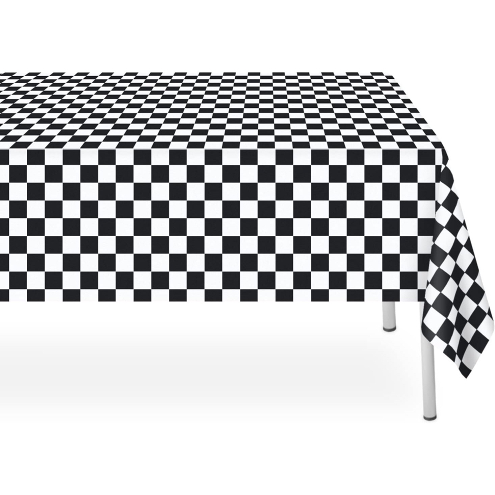 3 Pcs Black and White Checkered Tablecloths, Party Disposable Plastic Tablecloths, 137.16 x 274.32 cm Waterproof Black Checkered Flag Tablecloths