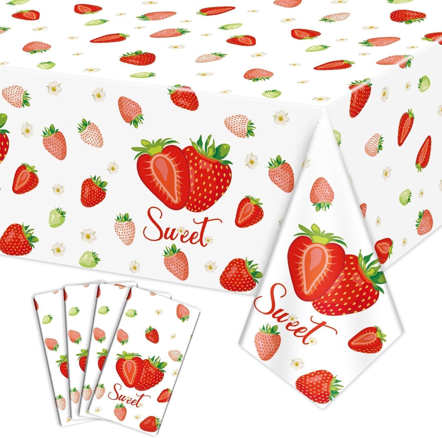 PTECDROTS 4Pcs Strawberry Tablecloths, White Rectangular Sweet One Table Cloths