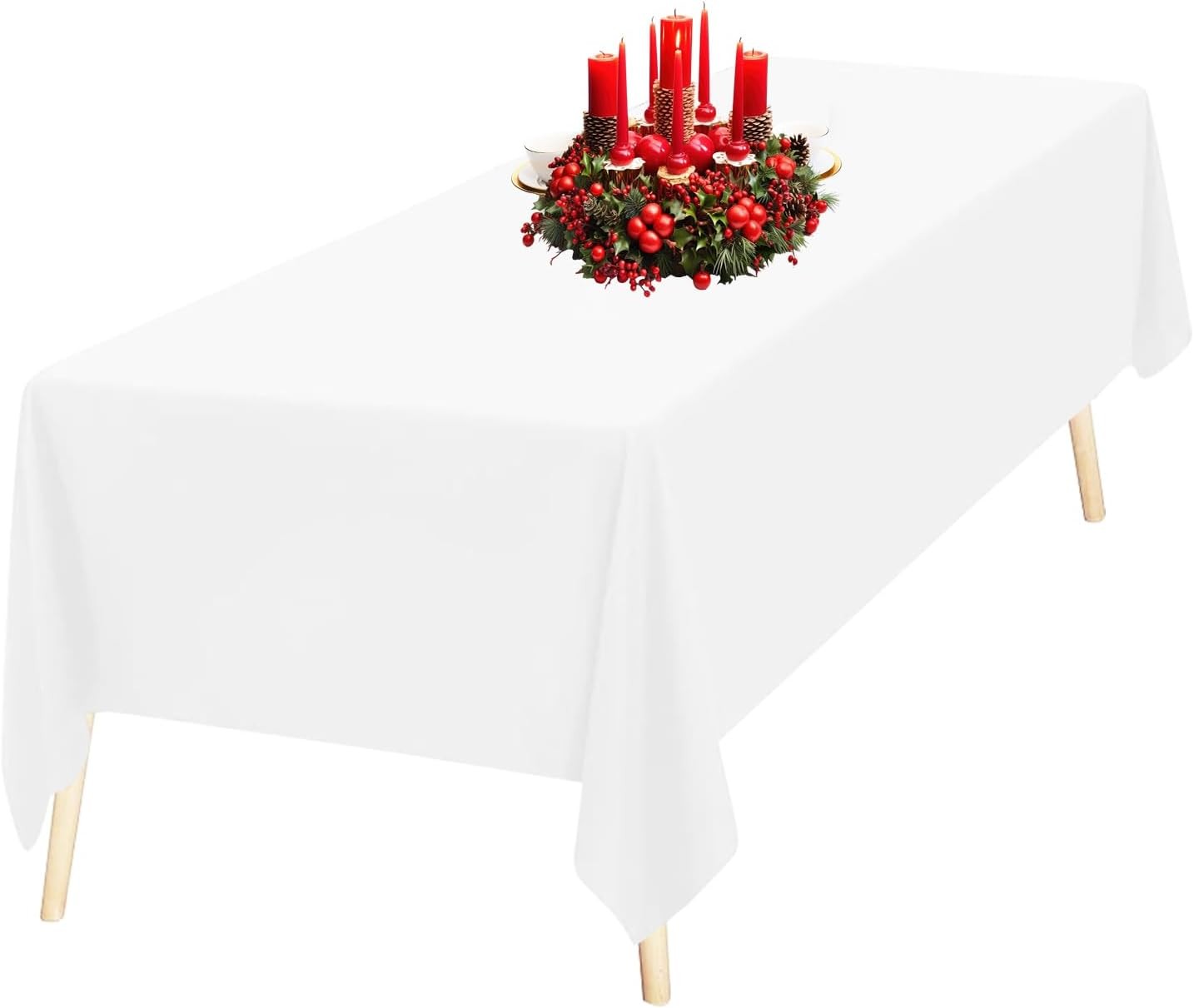 Pesonlook 2Pack White Polyester Tablecloths 60x126inch for 8ft Rectangle Tables