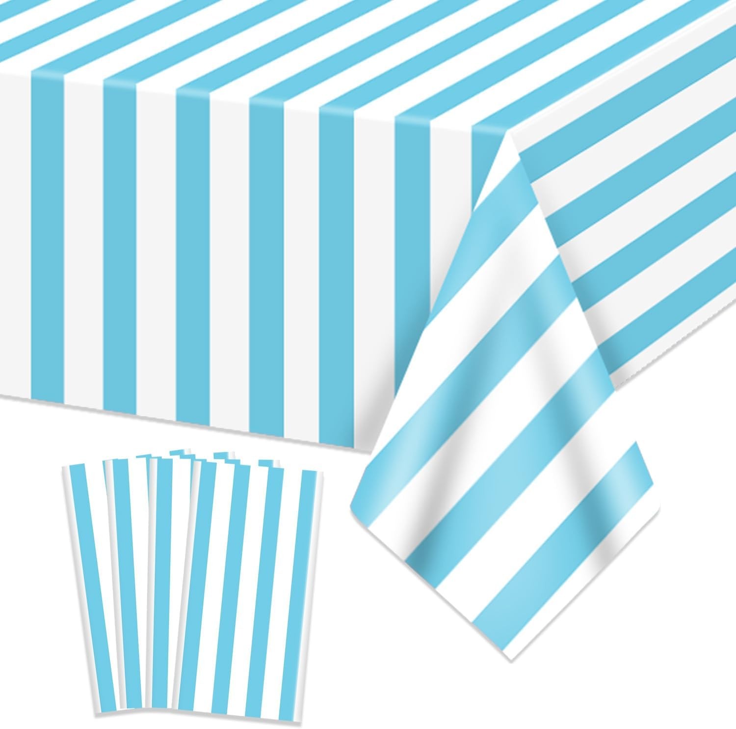 PIXHOTUL 4 Pcs Light Blue and White Stripes Tablecloths, Blue Stripe Table Cove