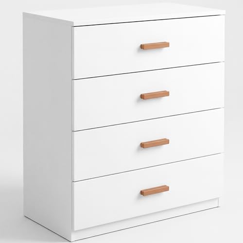 WHATSIZE ENTERPRISE Chest of Drawers for Bedroom, 4 Drawer White Dresser with Contemporary Design, Tall Storage Cabinet for Clothes, Bedroom Furniture, Easy Assembly