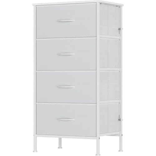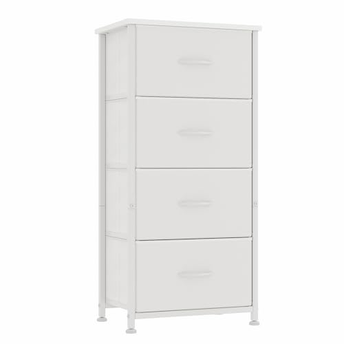 Feonase Chest of Drawers with 4 Fabric Drawers, Large Bedroom Dresser with Wooden Top & Sturdy Metal Frame, Tall Storage Organizer Unit for Bedroom, Living Room (White)