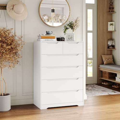 Flrrtenv Wooden Dresser for Bedroom, Chest of Drawers, Storage Cabinet, Tall 6 Drawer Organizer for Office, Living Room, Hallway - White Wood