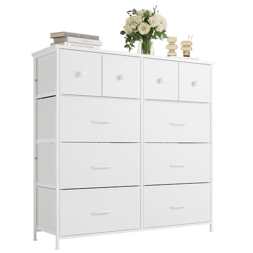 Nicehill Dresser for Bedroom with 10 Drawers, Storage Drawer Organizer, Tall Chest of Drawers for Closet, Clothes, Kids, Baby, Living Room, Wood Board, Fabric Drawers, White