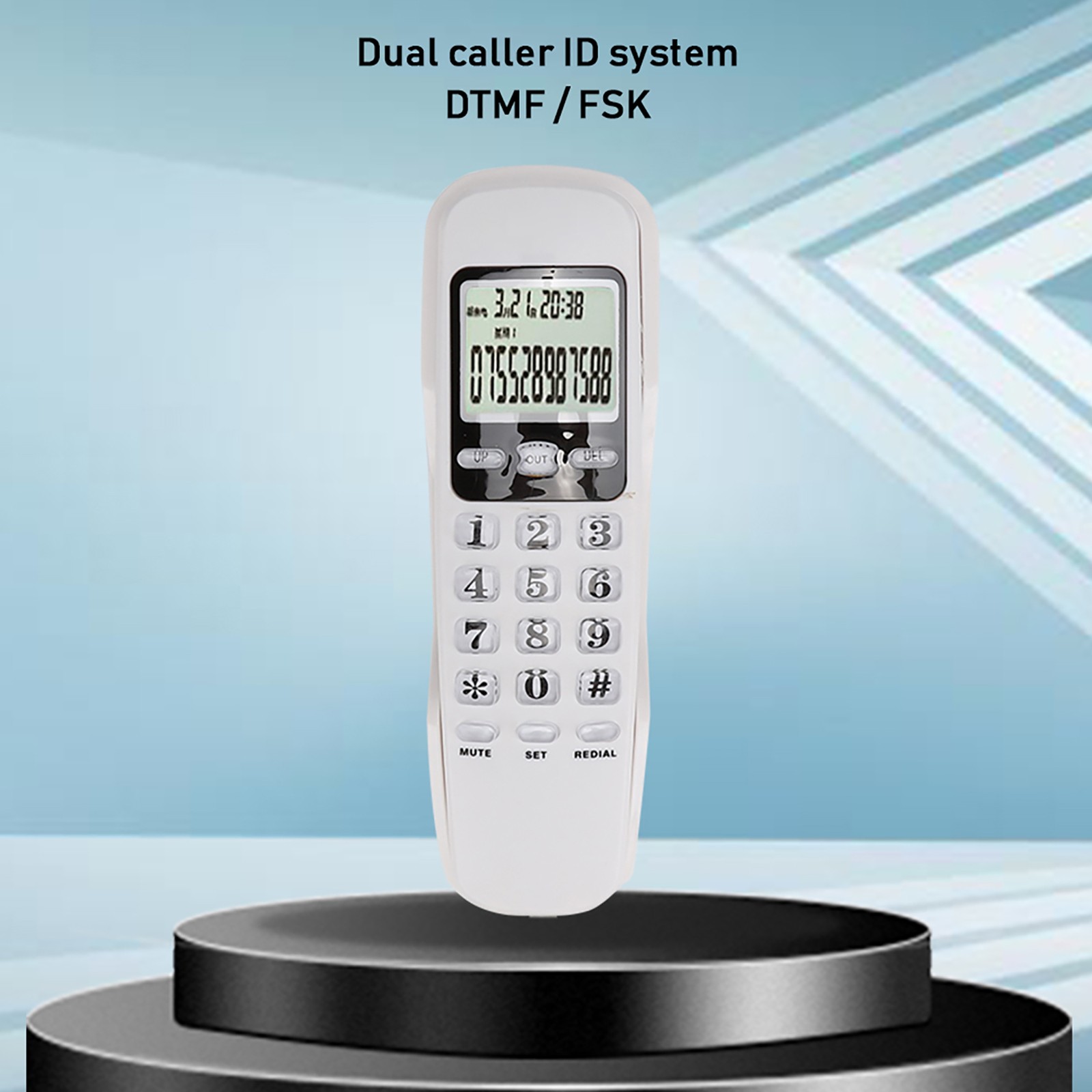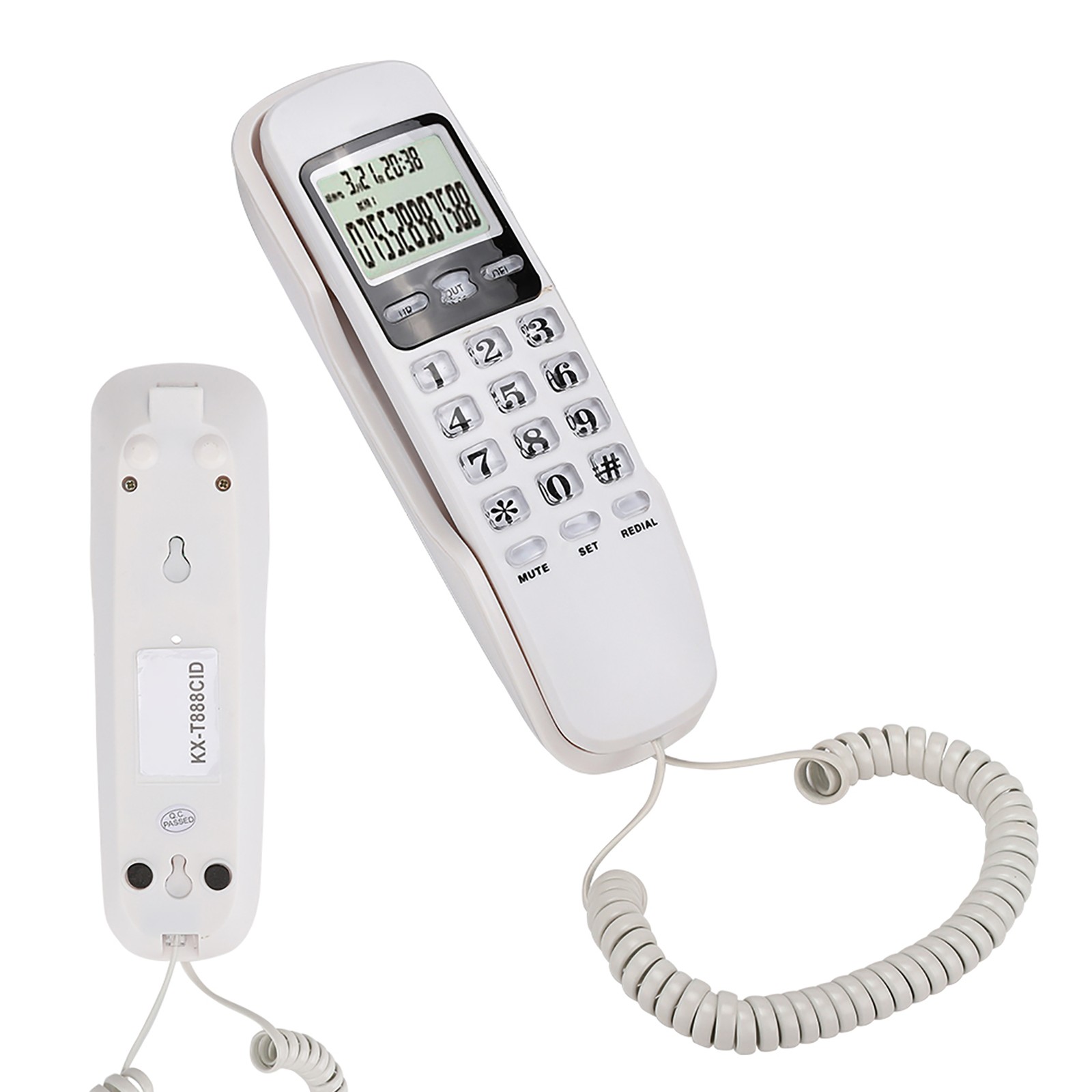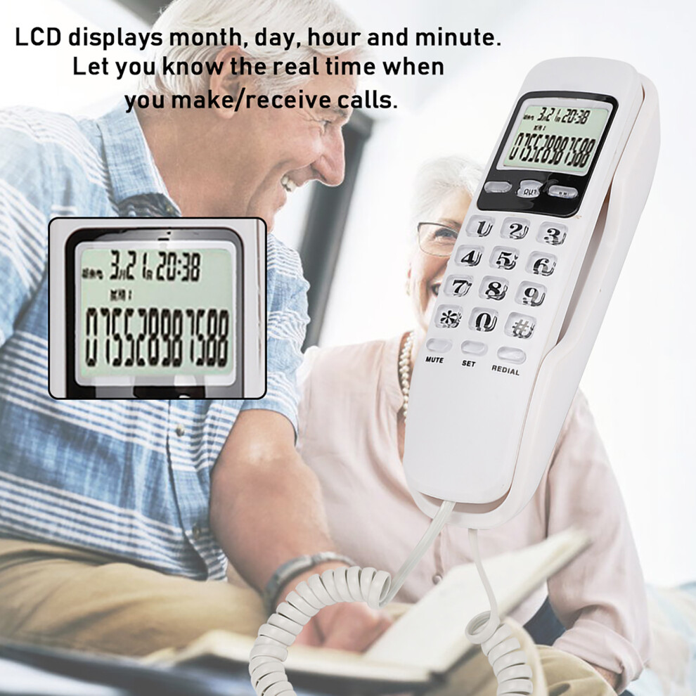 KX-T888CID English White LCD Dispaly Telephone Mini Wall Landline with Dual Caller ID System