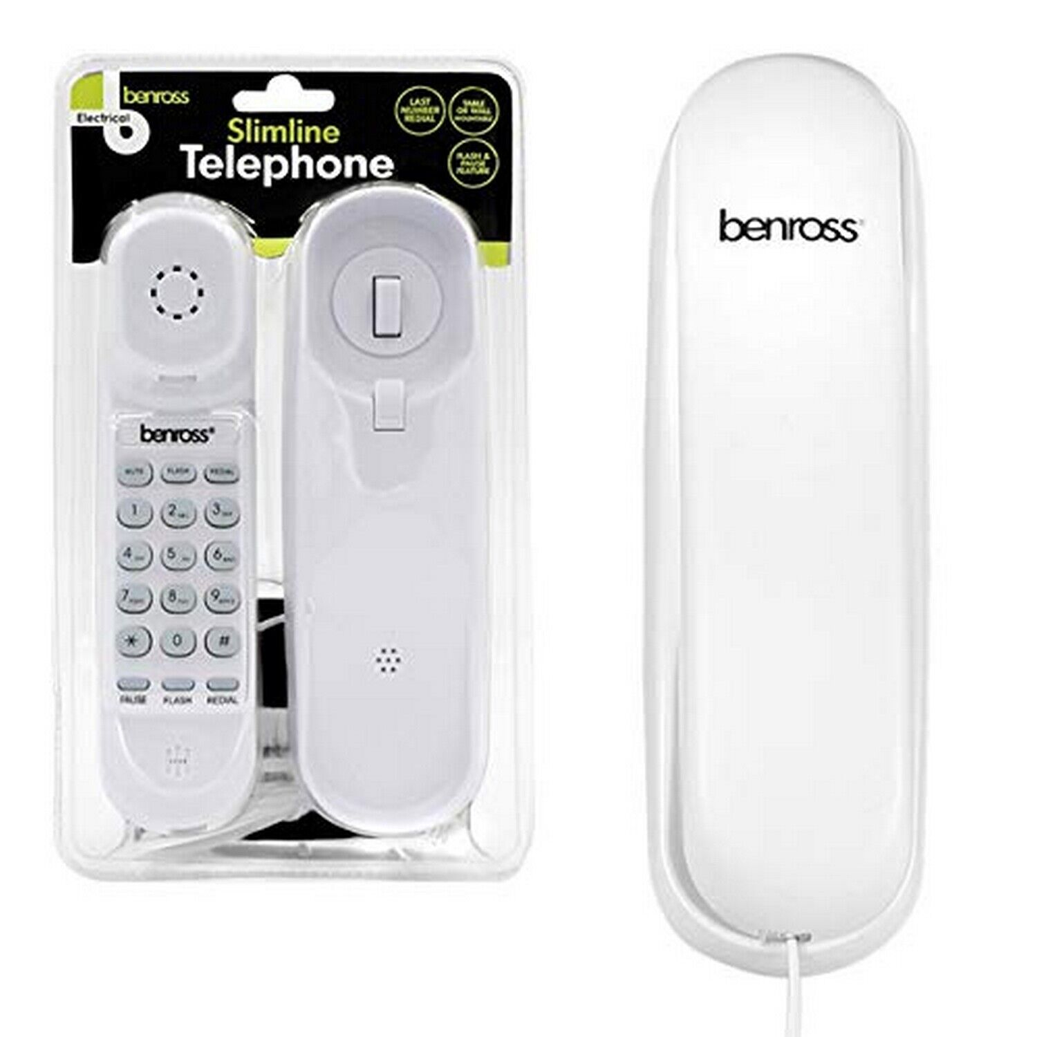 Benross White Slimline Corded Telephone Table Wall Mountable Home Office Phone