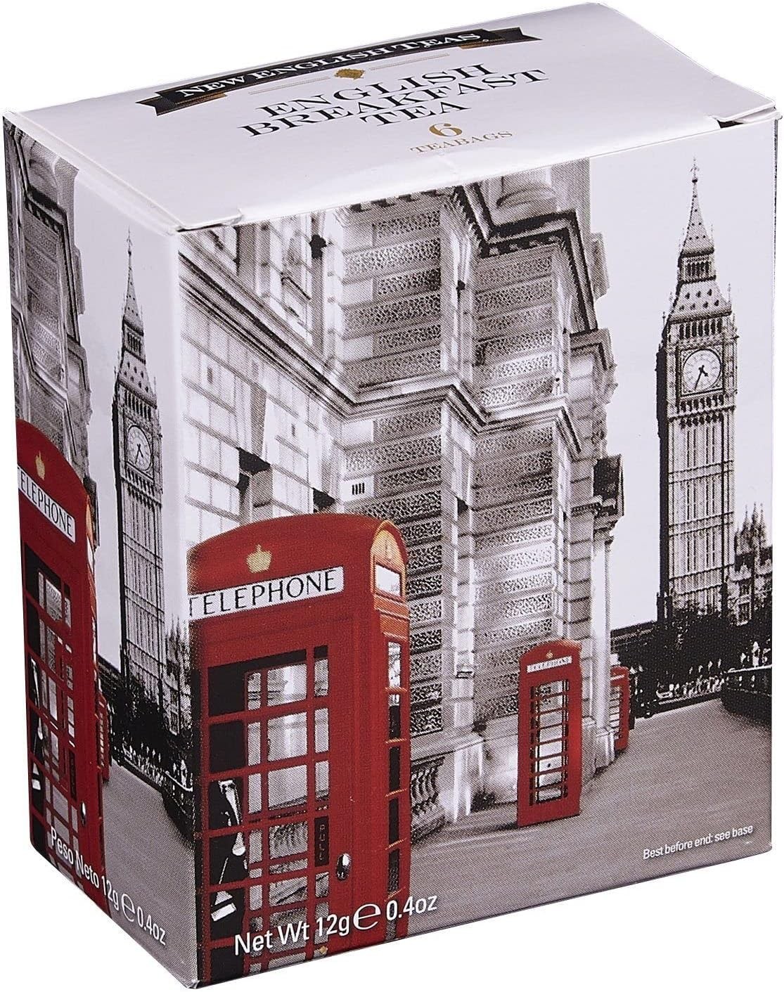 Black And White Red Telephone Box Breakfast Tea 6 Teabag Carton