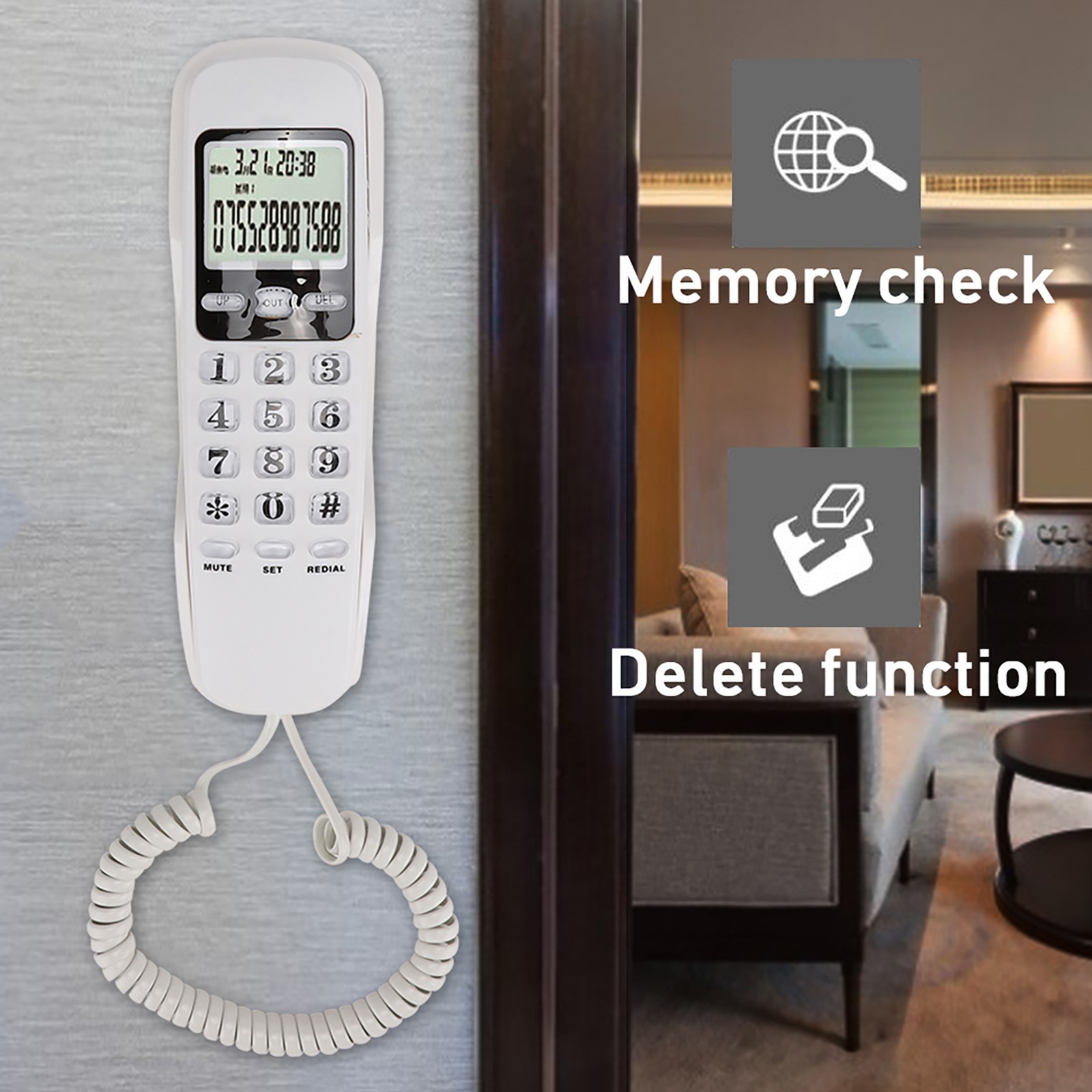 Home Hotel Wired Desktop Wall Phone Office Landline Telephone (White)