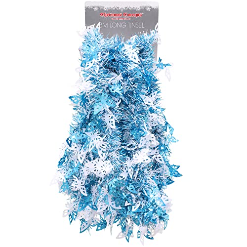 Christmas Concepts® 3m / 9.8ft Chunky/Fine Christmas Tinsel - Christmas Decoration Tinsel (Blue & White with Butterflies)