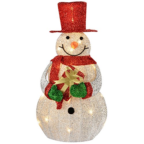 WeRChristmas 55 cm PreLit Tinsel Snowman Figurine 20 White LED Lights Christmas Decoration