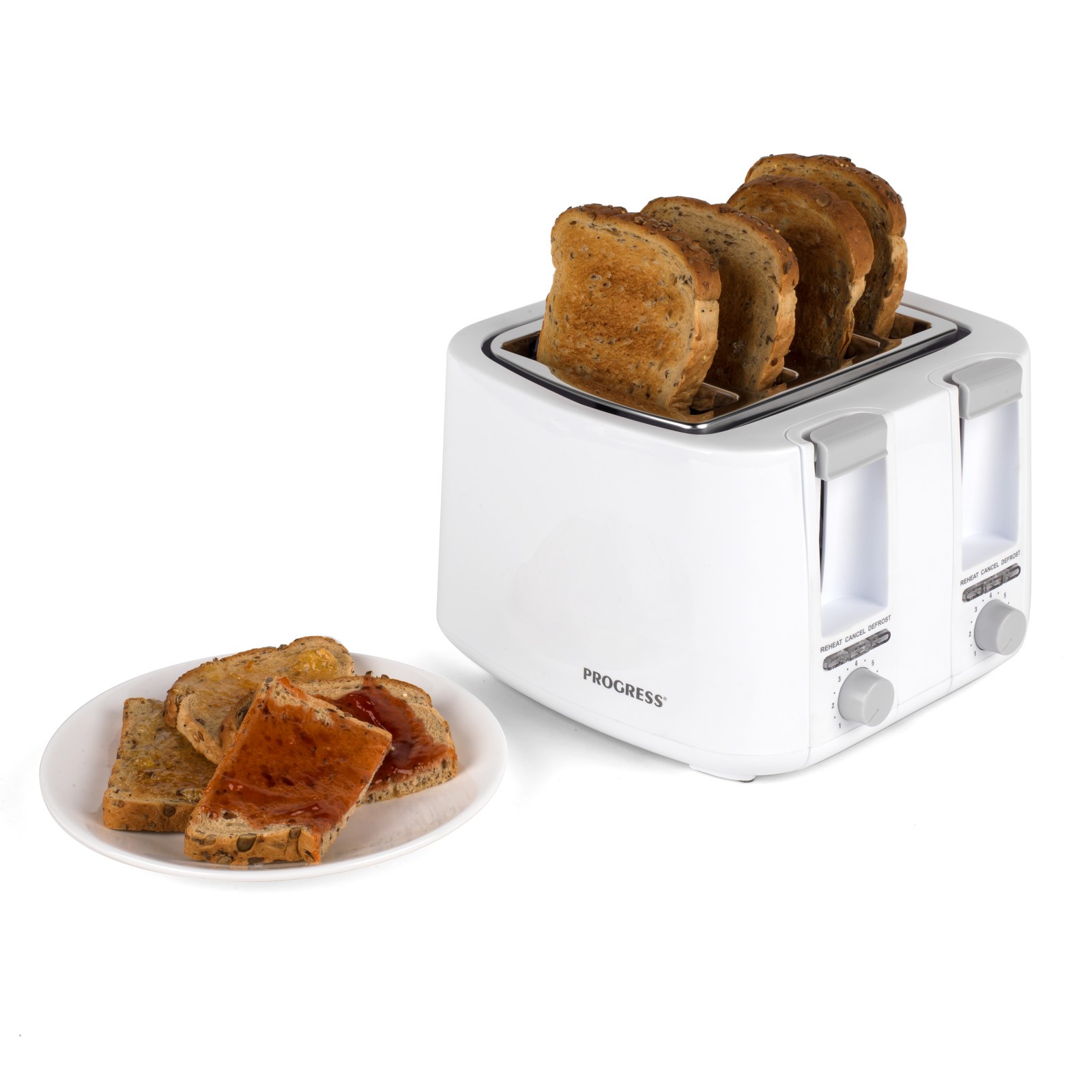 Progress 4-Slice Toaster – Anti-Jam Auto-Centring Toasting Slots, White