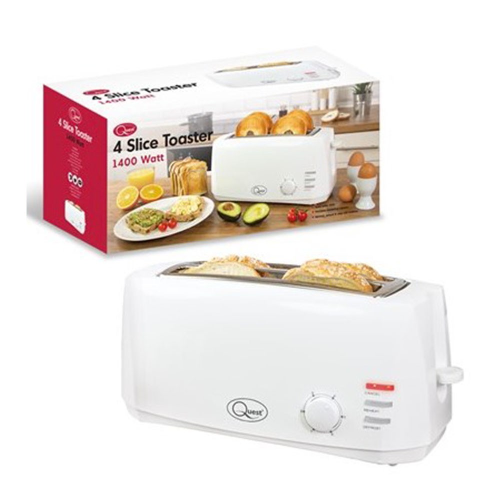 Quest 1400W White 4 Slice Extra Wide Slots Variable Browning Loaf Bread Toaster