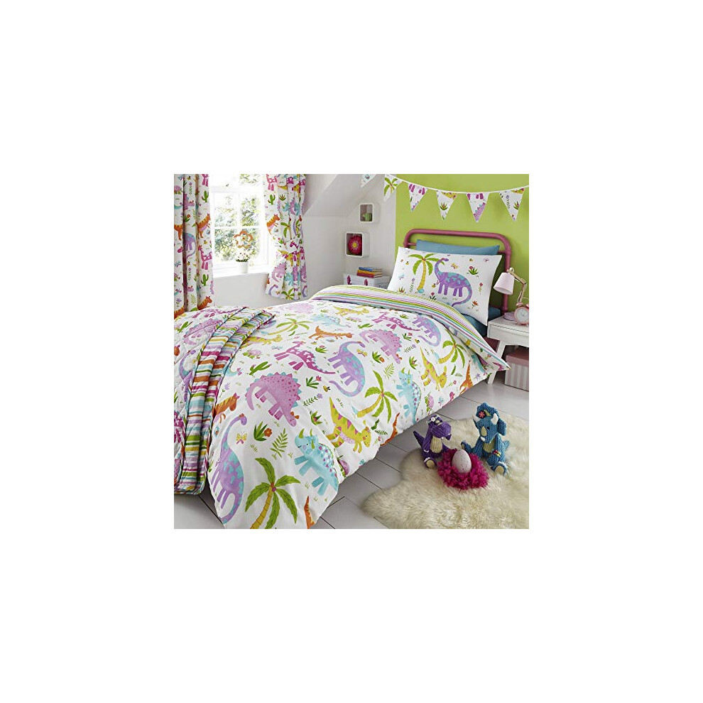 Kids Girls Dinosaur Park Jurassic Pink T-Rex Dino White Reversible Toddler Cot Bed Bedding Duvet Cover Set