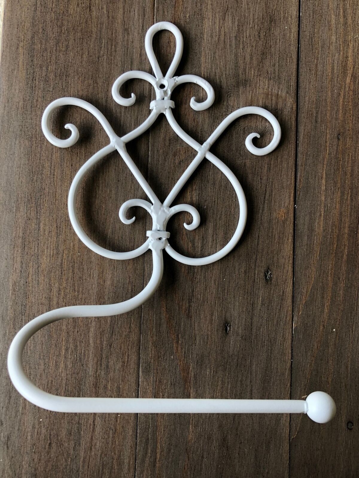 White Iron Toilet Roll Holder - Wall Mounted Heart Scroll Design