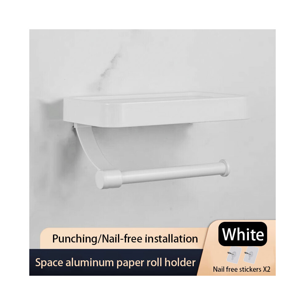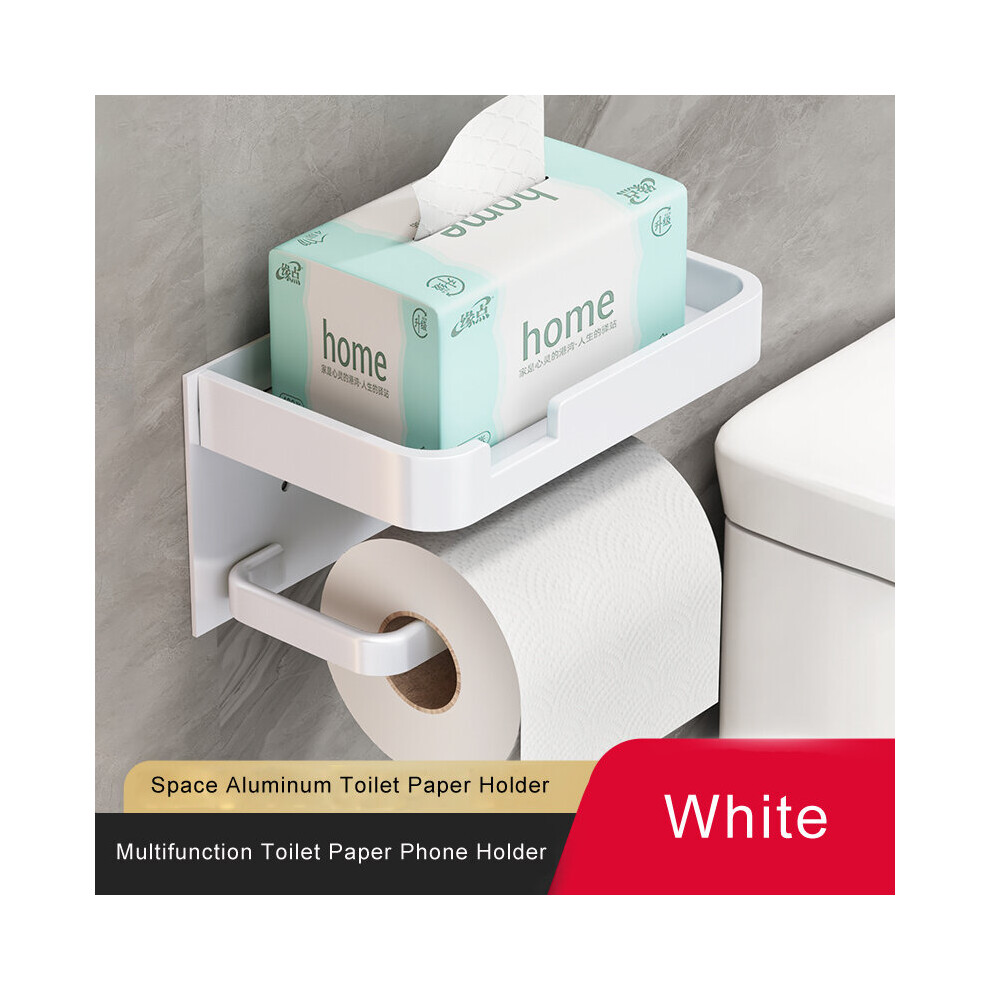 (a-White) Toilet Paper Roll Holder Hanger Pot Lid Hanging Cup Tissue Rack Shelf Adhesive Bedroom Towel Stand Accessory White