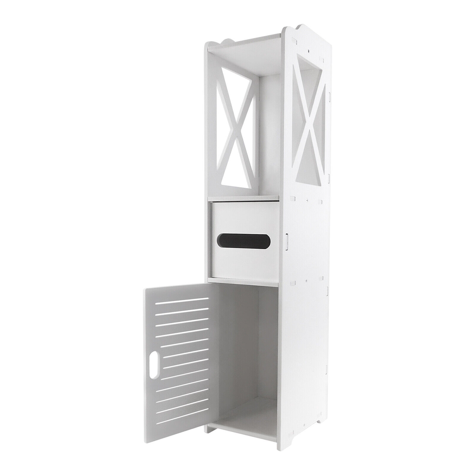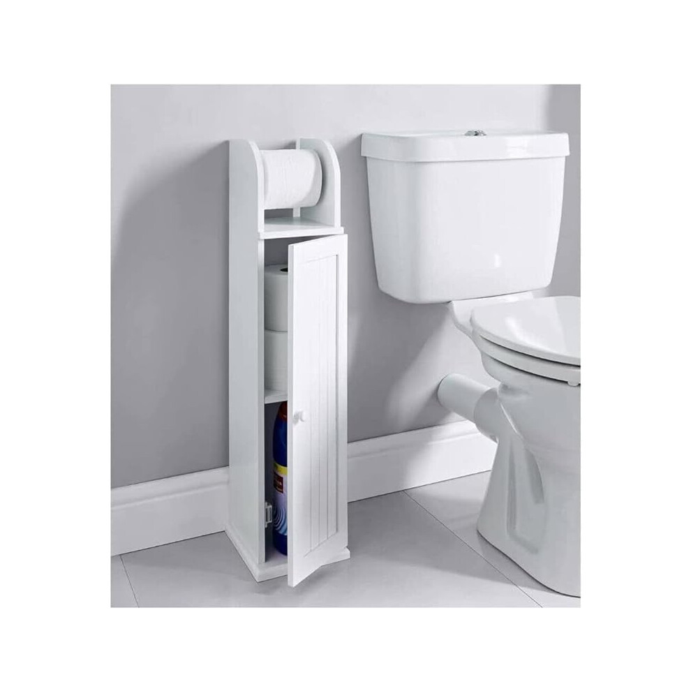 Free Standing Bathroom Storage Cabinet White Toilet Paper Roll Holder Cupboard