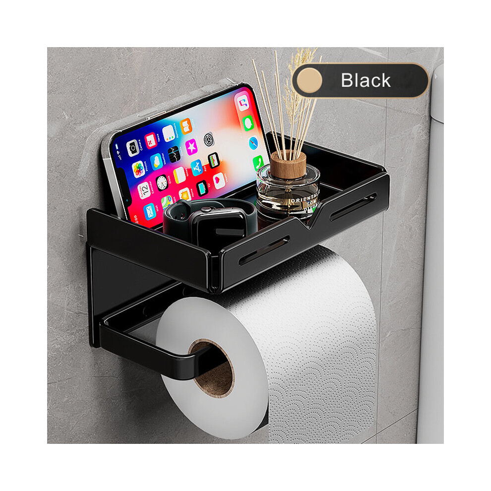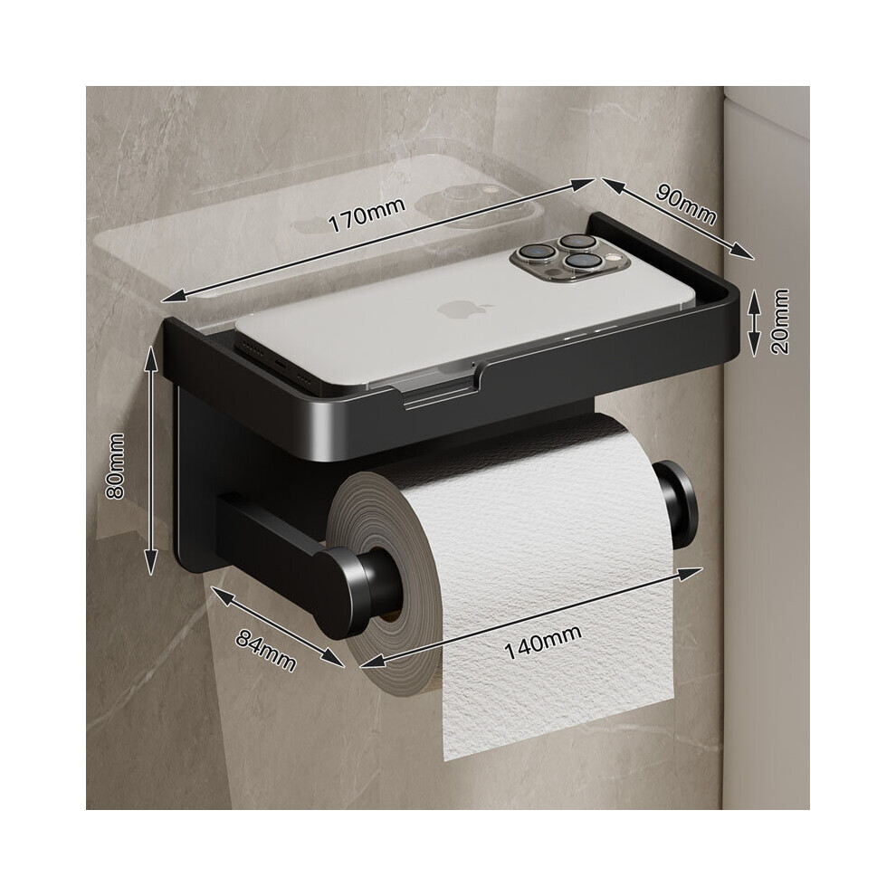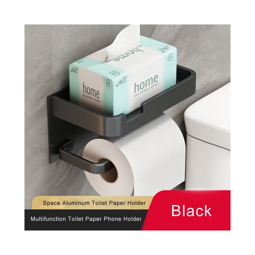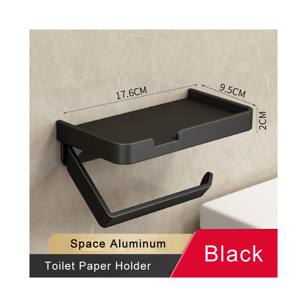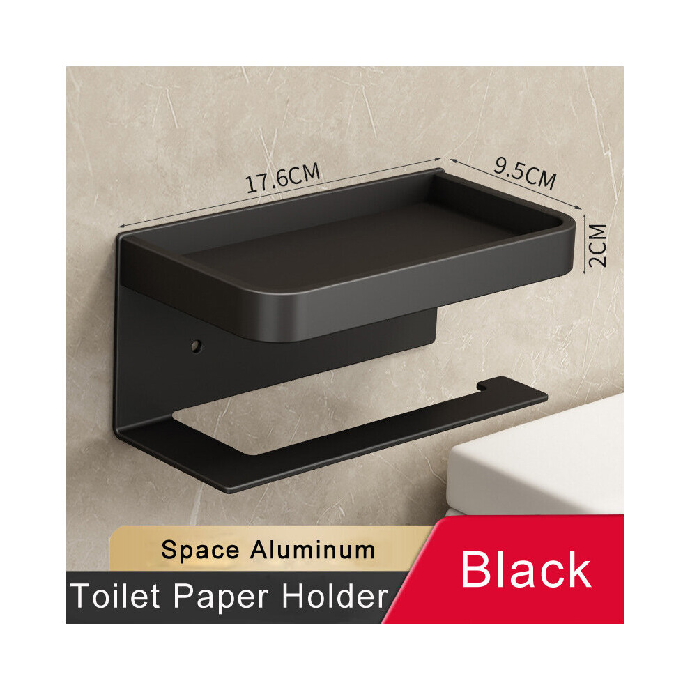 (a-Black E) Aluminum Bathroom Double Bar Toilet Paper Holder with Shelf Wall Toilet Phone Holder Black Grey White Toilet Paper Roll Holder