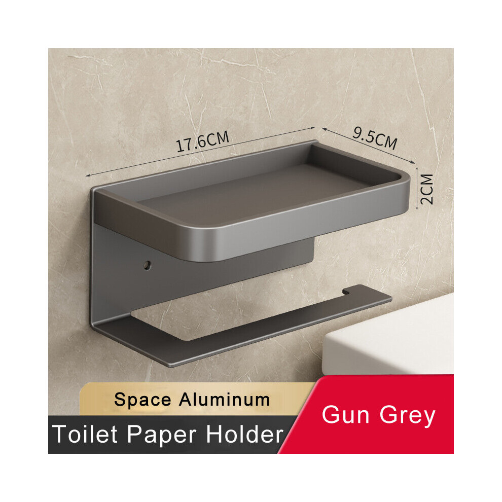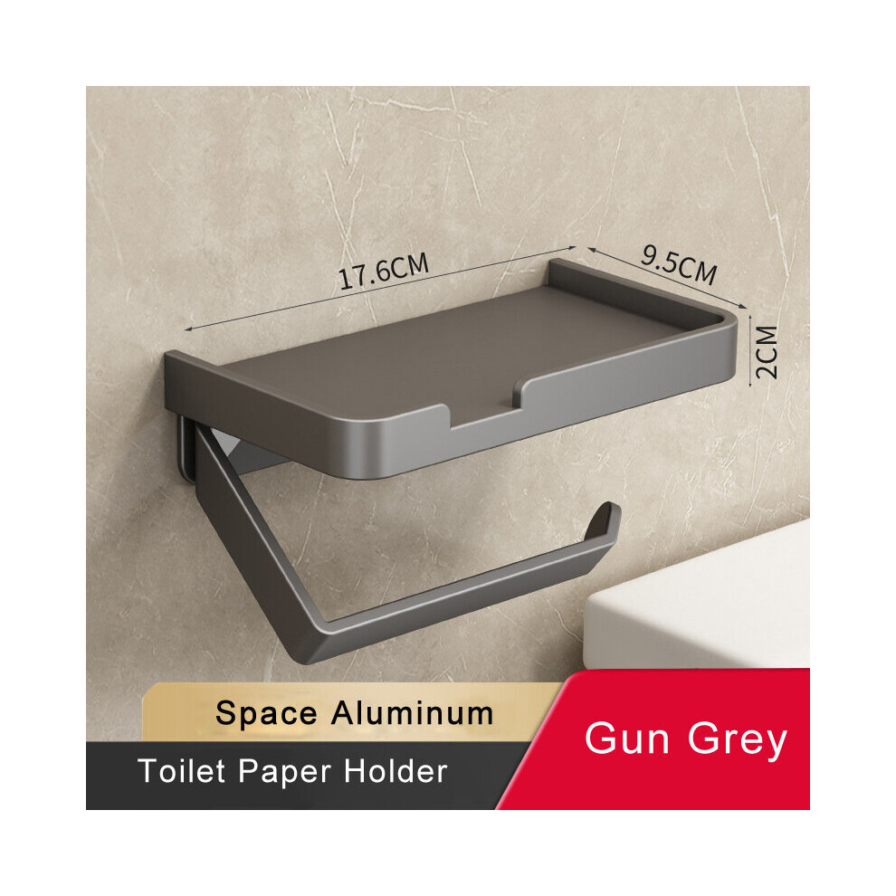 (a-Gun Grey) Aluminum Bathroom Double Bar Toilet Paper Holder with Shelf Wall Toilet Phone Holder Black Grey White Toilet Paper Roll Holder