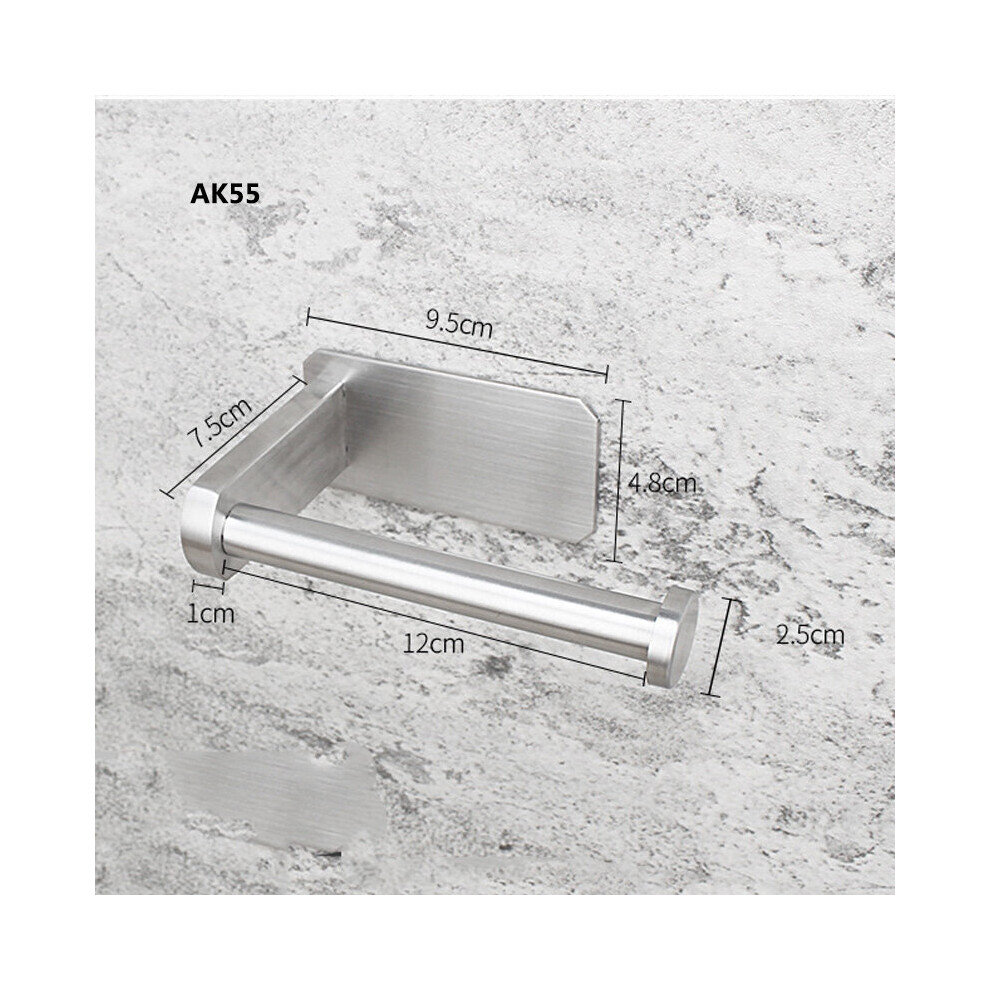 (a-White) Toilet Roll Holder Stainless Steel Self Adhesive Tissue Paper Holder Silver Punch-Free Towel Rack Wall Mount Toilet Accessories