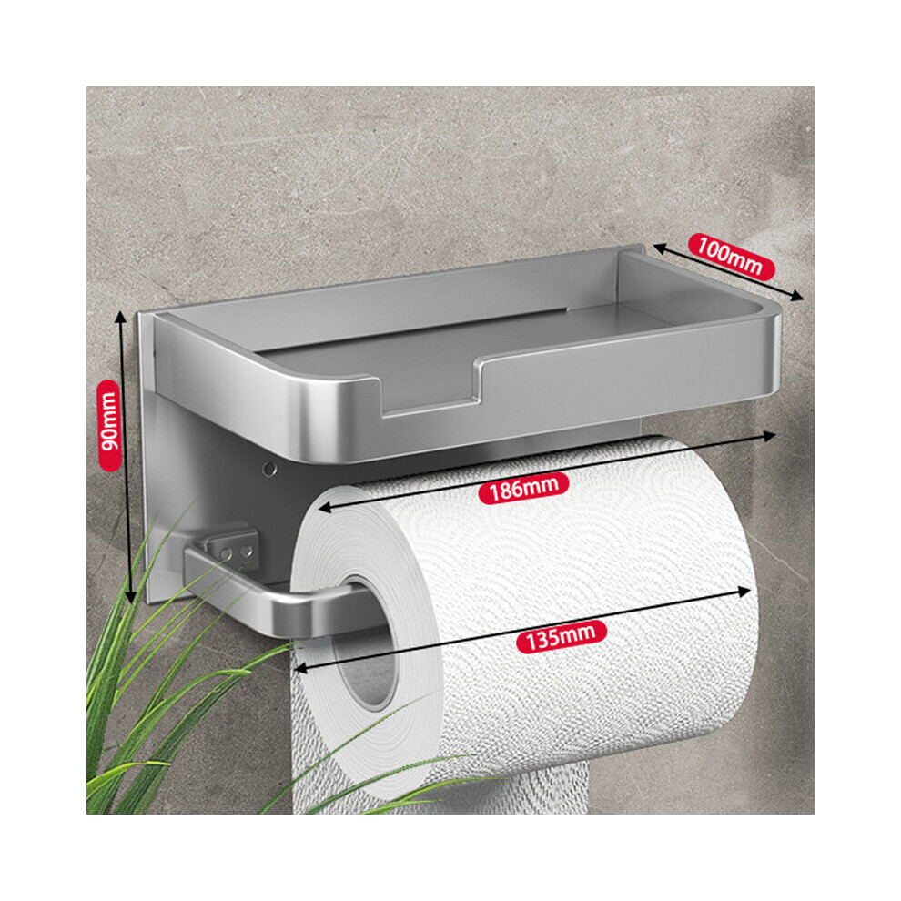 (a-Silver Color) Aluminum Bathroom Double Bar Toilet Paper Holder with Shelf Wall Toilet Phone Holder Black Grey White Toilet Paper Roll Holder