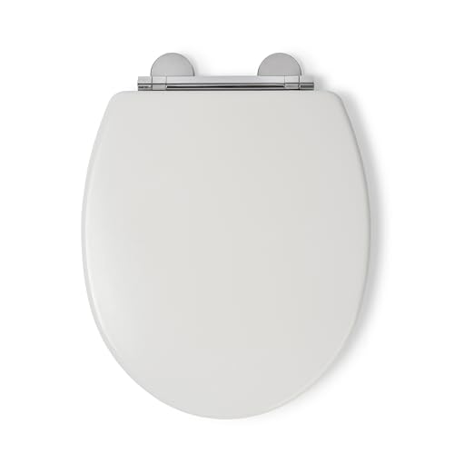 CELMAC Emerald White Toilet seat with Chromed Metal Hinges - FREE 1 Day Delivery
