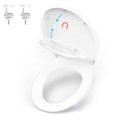 DERW Soft Close Toilet Seat, Heavy Duty Environmentally Friendly Urea-Formaldehyde Resin, O-Shaped Design, Quiet Slow Close, Quick Release, Install with Alignment Guide, Durable White Toilet Seat