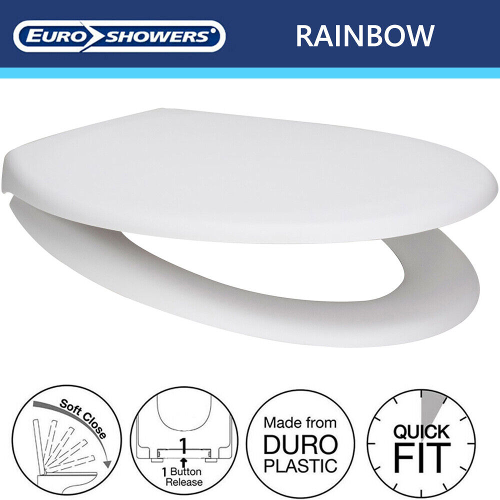 White SOFT CLOSE Toilet Seat ONE Button Release DUROPLAST Top / Bottom Fix