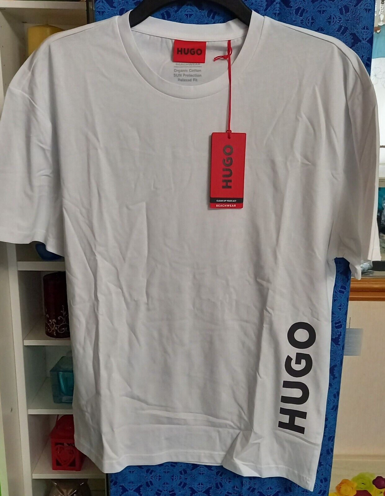 HUGO Beachwear Logo Relaxed Fit Short Sleeve White T-Shirt, Men's size Medium