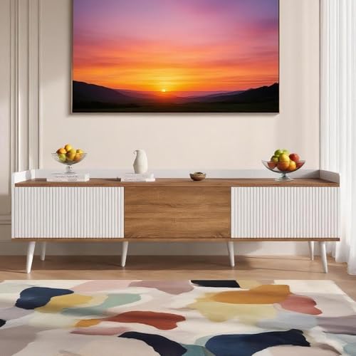 YESHOMY Modern TV Stand for 65" Television, Entertainment Center with Two Storage Cabinets, Retro Style Media Console for Living Room, Bedroom, Office, 58 Inch, White and Coffee