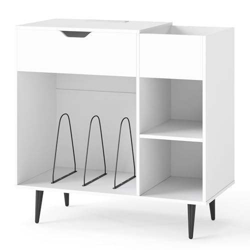 LYXWGRZD Media Stand Storage Cabinet Vinyl Record Player Stand Stereo Racks With for Entertainment Stereo Tower Player for Living Room & Bedroom(White,23cm/9.1in)