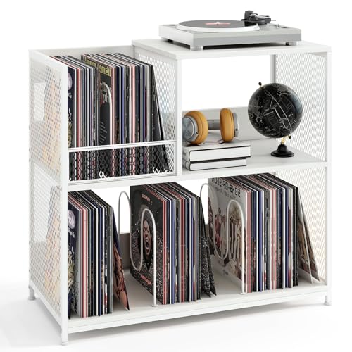 Leesingdo Record Player Stand with Vinyl Storage, Vinyl Record Storage Cabinet Holds Up to 150 Albums, End Table for Record Player, Turntable Stand for Living Room, White