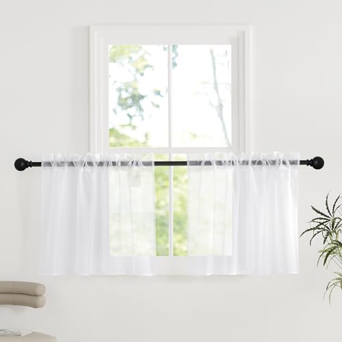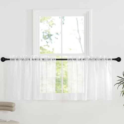 MRTREES Voile White Curtains 48 Inch Drop 2 Panels Voile Curtain Panel Rod Pocket for Door Bedroom Kitchen 55x48 Inch Drop Short Sheer Curtains 140cm x 122cm