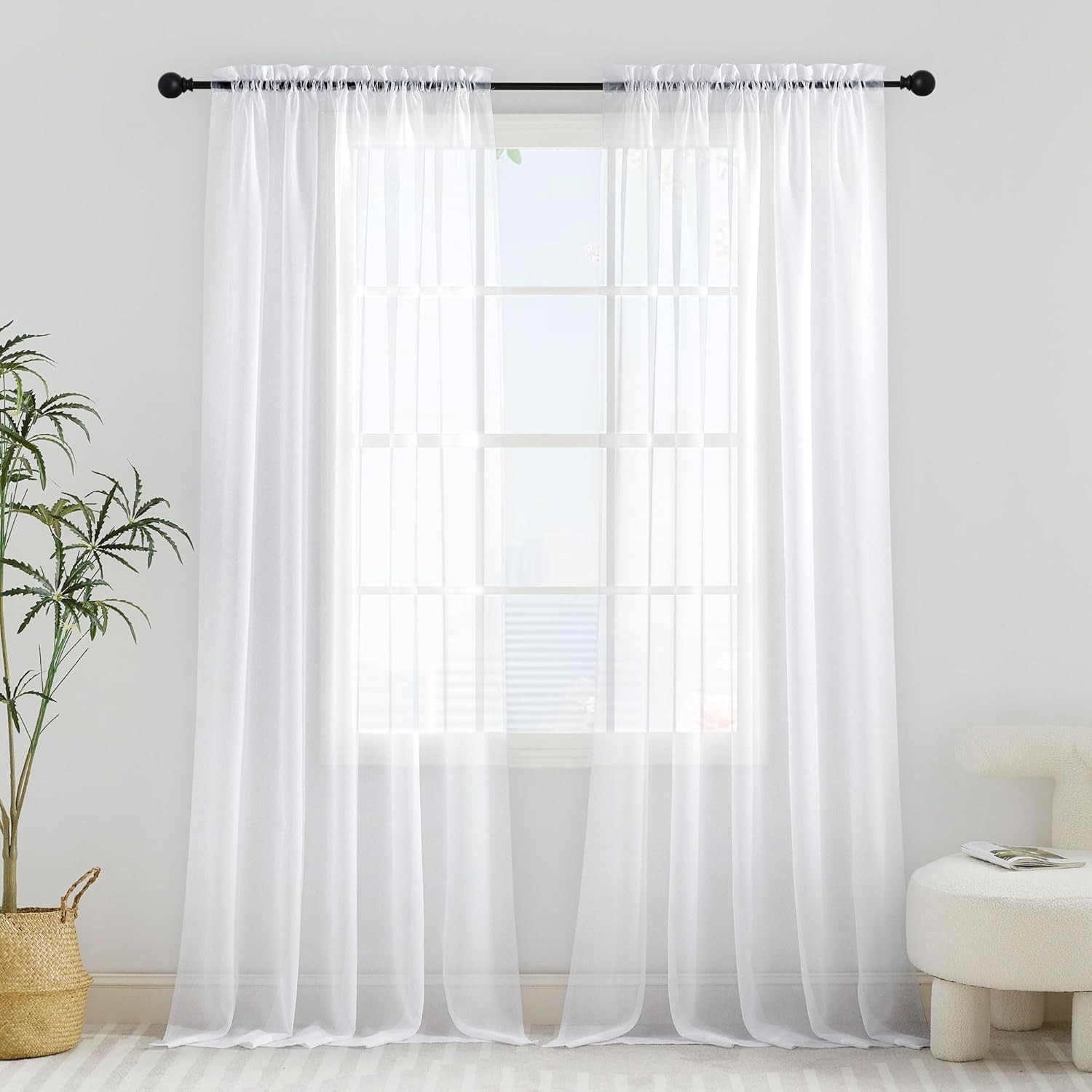 Pacok White Voile Curtains, 108 Drop 2 Panels Net Curtain for Windows, Rod Pocket Sheer Curtain Panel Voile Curtains for Living Room Kitcken Bedroom W56xL108 Inch(White, 142 x 274cm)