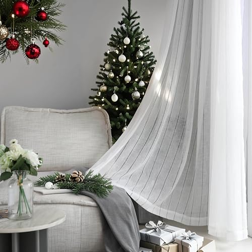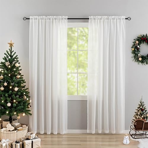 Home Brilliant White Stripe Voile Sheer Curtains Window Treatment Set of 2 Net Curtains Drapes for Privacy, 96 inches Drop