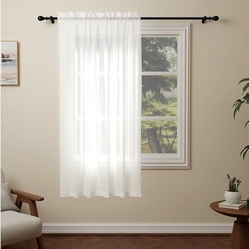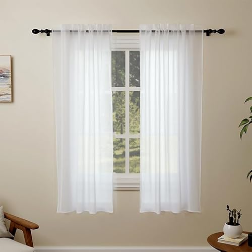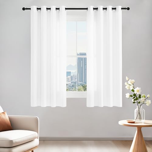 PONY DANCE White Voile Curtains - Net Curtains for Bedroom Linen Look Sheer Light Filter Thick Small Windows Curtain for Bathroom, 2 Pieces, W 52 inch by L 63 inch, 140CM x 160CM