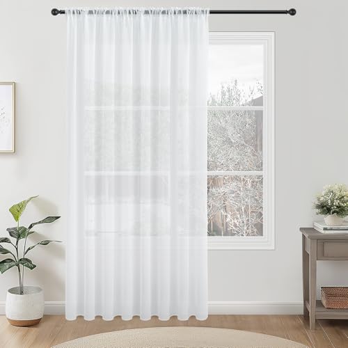 MRTREES Set of 2 White Voile Curtains with Rod Pocket for Bedroom Door, 137 x 213 cm