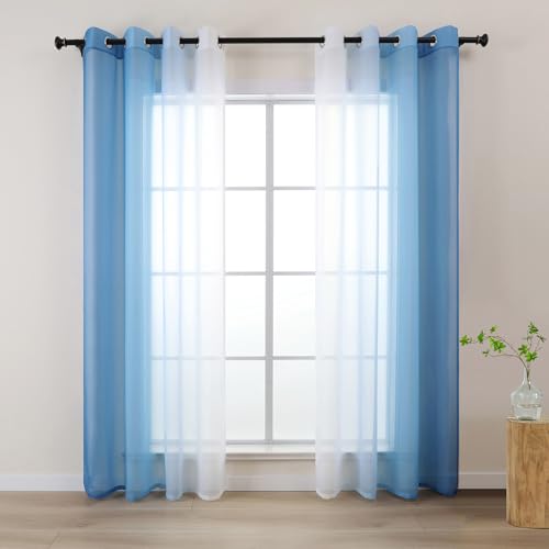L.Z.E Blue White Voile Curtains for Living Room, Light Blue Ombre Sheer Curtain for Kids Boys Room Bedroom Windows, Transparent, 96 Inch Drop 245 cm Long, Colour Gradient Design, with Eyelet